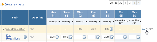 In case you need to re-open a completed task, shown on the Enter Time-Track interface,